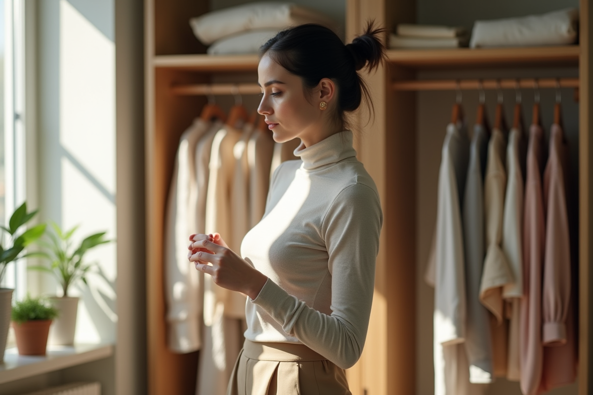 Construire une robe capsule commence par un tri minutieux de son armoire. Passez en revue chaque vêtement, essayez, jugez ce qui vous va vraiment. L’objectif : ne conserver que ce qui correspond à votre style personnel, à votre morphologie, et à vos usages quotidiens. Pour une harmonie visuelle, analysez votre colorimétrie : privilégiez les teintes sobres comme le noir, le beige ou le bleu marine, mais n’hésitez pas à intégrer quelques couleurs vives pour dynamiser l’ensemble. Choisissez des matières solides et naturelles, certifiées par des labels comme GOTS ou GRS. Les textiles innovants, tel le Piñatex, séduisent aussi pour leur faible impact écologique.