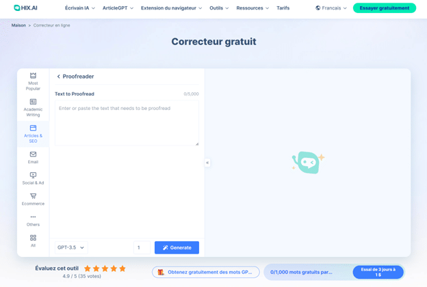 L’interface conviviale du Correcteur HIX simplifie la tâche parfois laborieuse de la relecture. Avec un outil en ligne simple qui nécessite juste quelques clics, les rédacteurs peuvent rapidement soumettre leur texte pour révision et recevoir un feedback immédiat et complet. C’est une solution sans tracas pour l’édition mobile.